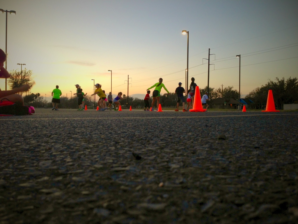 How fitting is it that at each spot to reach each running drill is Mommas ever present ORANGE under a glowing sunset?